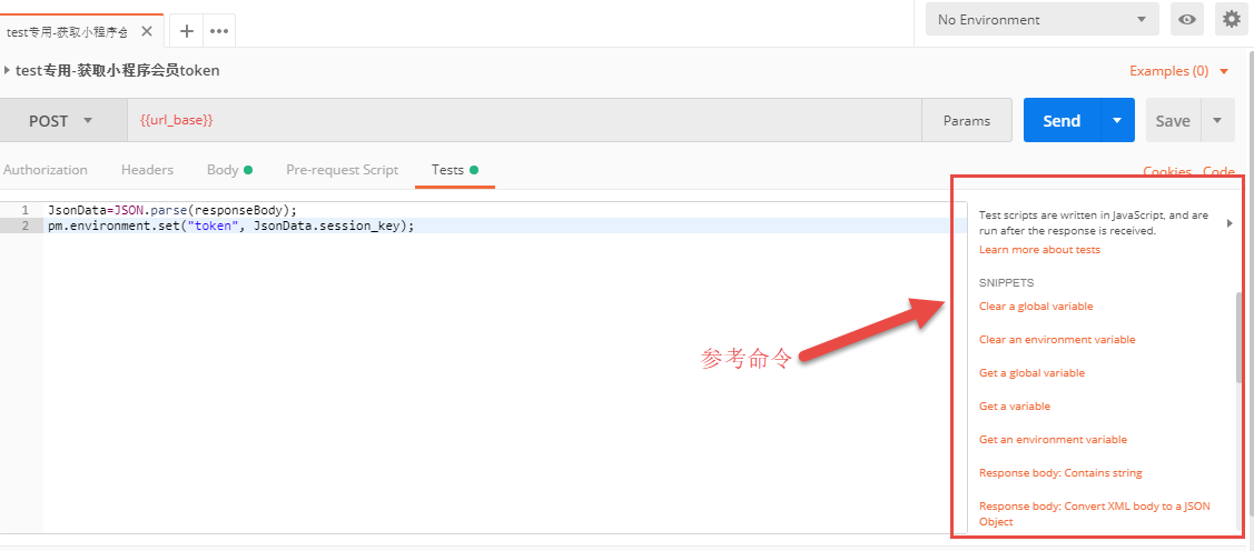 在这种情况下,可以将最初请求接口返回的token数据,设置为环境变量或全局变量,便于下次直接调用,不用每次都请求一遍接口获取token
